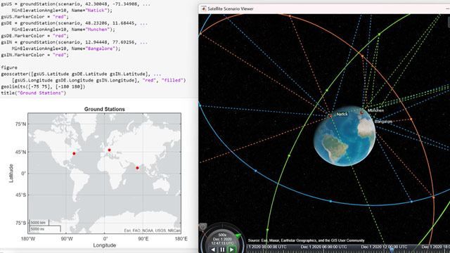 - Modélisez des réseaux non terrestres (NTN) en réalisant des simulations de bout en bout au niveau liaison, la modélisation de scénarios, la propagation d’orbite et la visualisation.