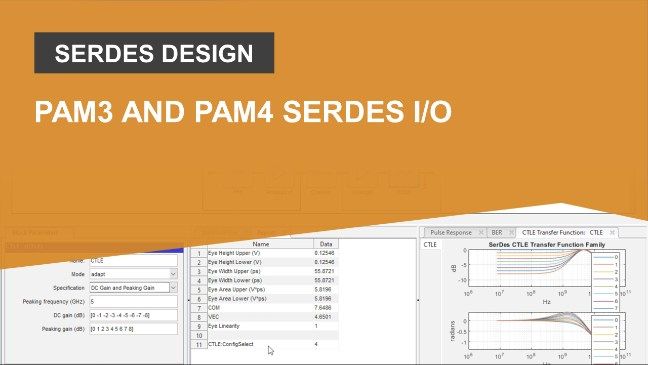 MATLAB® and Simulink® offer a simulation environment where engineers can model, analyze, and optimize SerDes systems. With these tools, engineers can perform time-domain and frequency-domain analyses, design custom modulation schemes, and import S-parameters to test the impact of channel impairments on system performance before moving to hardware prototypes.