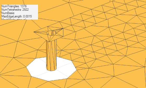 Once the CoaxialFeed object has been assigned to the FeedDefinitions property, view the new mesh and feed site.