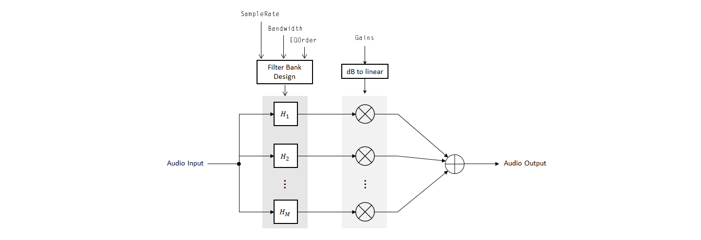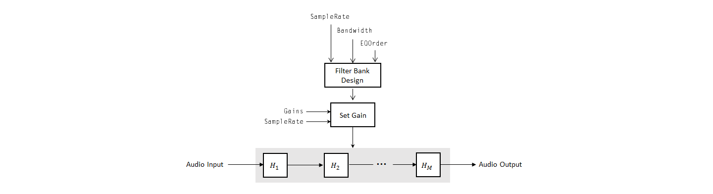 octave') creates a System object, equalizer, which implements filtering using a parallel