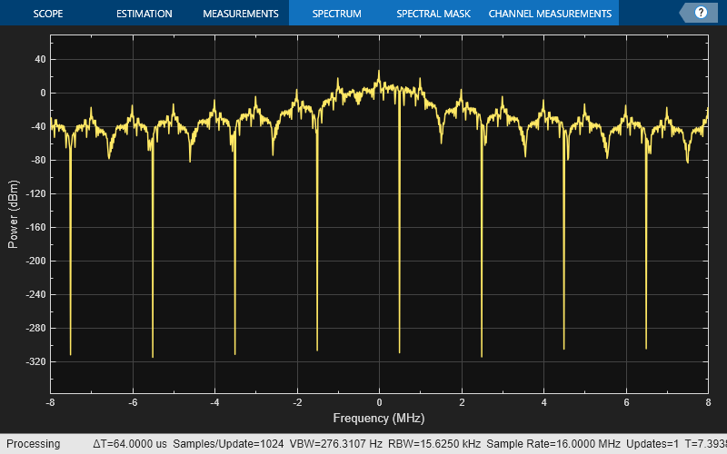waveformInitR = bleCSWaveform(cfgObjectR); frequencyScope(waveformInitR) release(frequencyScope)