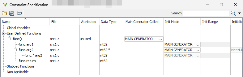 ,function_name.arg1, etc.function_name.arg2Specify your constraints on one or more of the function inputs. For more information, see External Constraints for Polyspace Analysis.