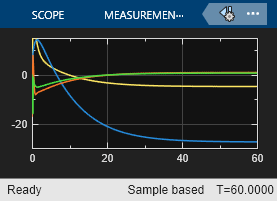 sim("lqrpilot")Consultez la réponse du roulis à un changement d’échelon de 60°. Le système suit le roulis défini sous 60 secondes environ.