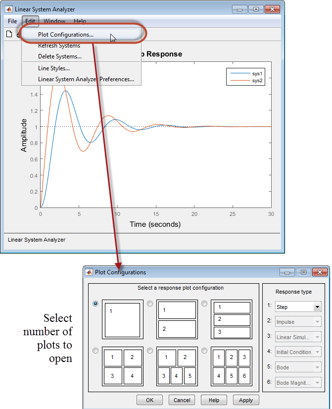 Ouvrez Linear System Analyzer en affichant un ou plusieurs modèles à l'aide de la syntaxe suivante :