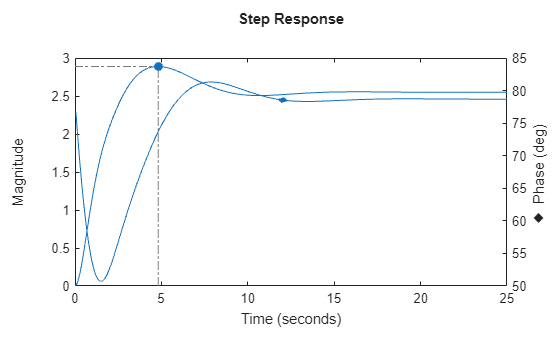 If sys is a model with complex coefficients, then the plot shows both the real and imaginary components of the response on a single axes and indicates the imaginary component with a diamond marker. You can also view the response using magnitude-phase and complex-plane plots. (since R2025a)