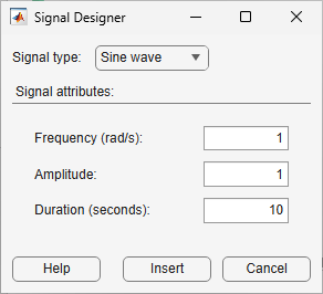 In the Signal Designer dialog box, select the type of signal to create and specify the signal parameters.