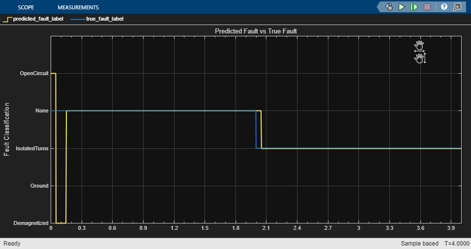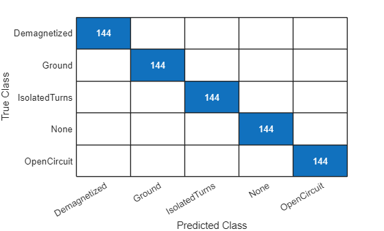 logsout_PMSMFaultClassifier = simOut.logsout_PMSMFaultClassifier; predictedFault = get(logsout_PMSMFaultClassifier,"predicted_fault").Values; trueFault = get(logsout_PMSMFaultClassifier,"true_fault").Values; [predictedFault, trueFault] = synchronize(predictedFault,trueFault,"Intersection");