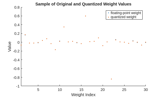 quantizedLayerWeights = fi(originalLayerWeights,1,8);