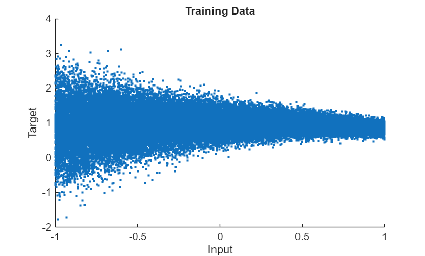figure scatter(X,T,".") xlabel("Input") ylabel("Target") title("Training Data")