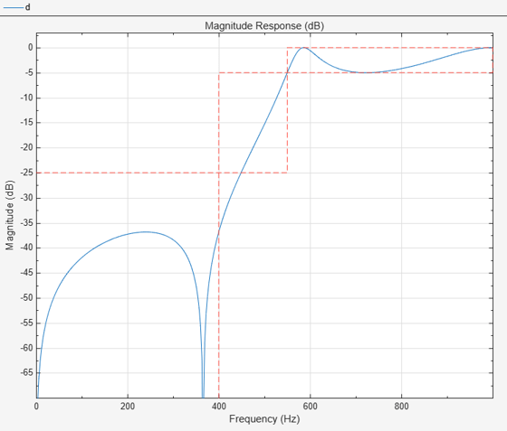 400Hz and a passband frequency of550Hz.Under Magnitude Specifications, specify a stopband attenuation of