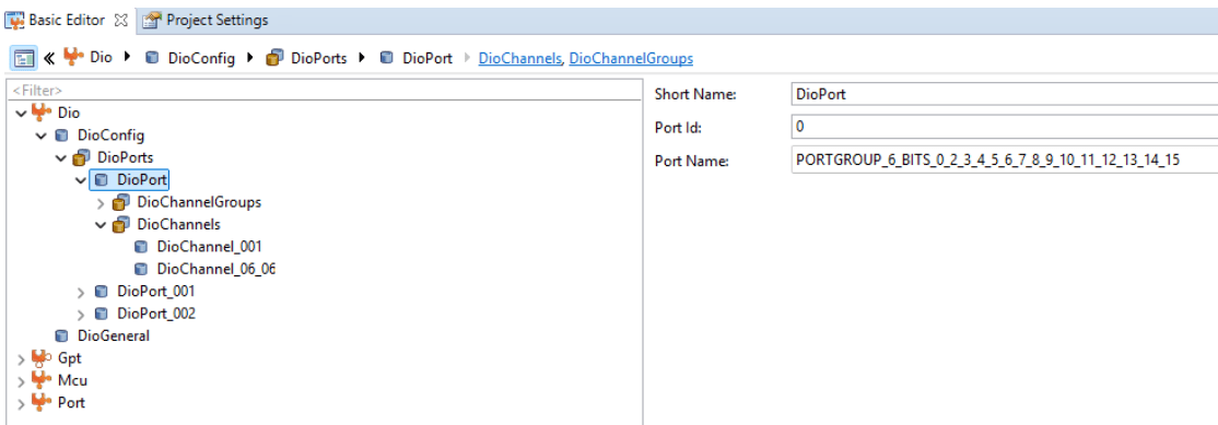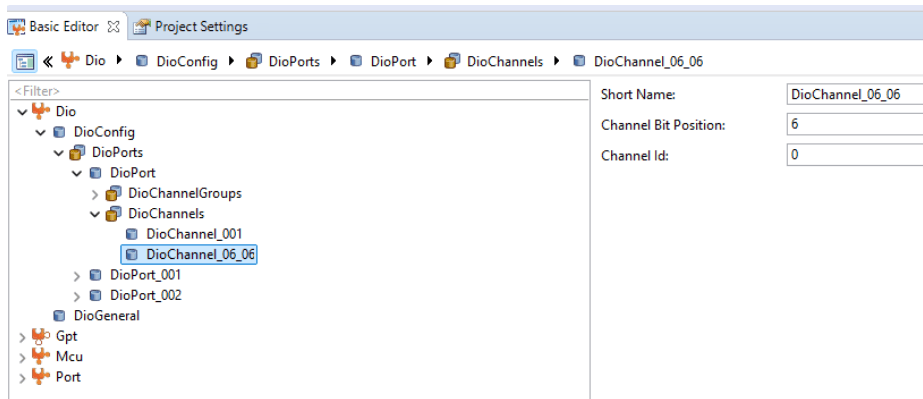 • A DIO channel with the short name DioChannel_06_06 is defined