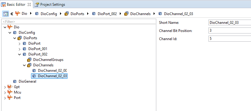 A DIO channel with the short name DioChannel_02_03 is defined.