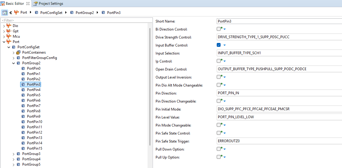This example uses a third-party AUTOSAR configuration tool to configure the MCAL modules Port and DIO.