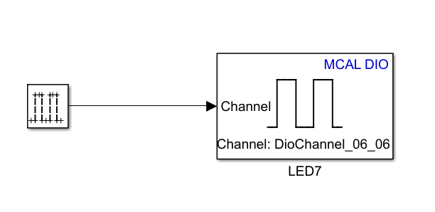 This example shows how to control a digital output on a Renesas RH850/U2A16 Microcontroller using the AUTOSAR MCAL DIO Channel Write block in Simulink. The example uses an onboard LED to demonstrate how MCAL DIO configuration and model-based design work together to generate, deploy, and run the model on RH850 hardware to drive an LED.