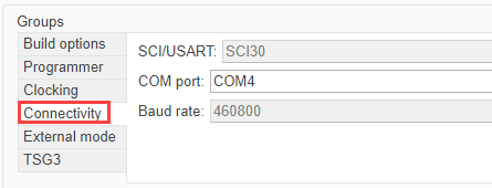 • R7F702300x_dio.arxml is added as the configuration description file in Build options. To verify click Modeling > Model Settings to open the Configuration Parameters dialog box. Navigate to Hardware Implementation > Target hardware resources > Build options.