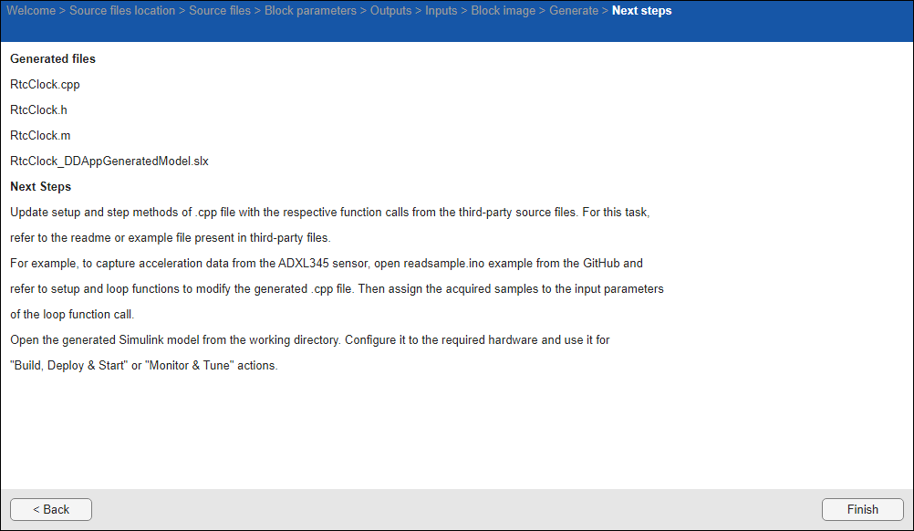 cppfiles step and setup function as required.Then open the generated model and navigate to Modeling > Model Settings and in the Configuration Parameters dialog box, click Hardware Implementation and then select an STMicroelectronics® Processor-Based board and do the necessary modifications.