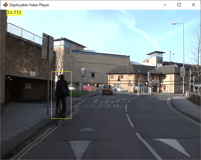 This example shows how to perform automatic detection and tracking of pedestrians in a video from a moving camera. You can generate SIMD code using Intel™ AVX2 technology to increase the number of frames per second in the video. A higher frame rate improves the quality and speed of the detection and tracking system.