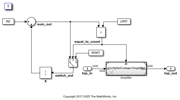 file = fullfile("ConfigSetCodegenTargetTop_ert_rtw","ConfigSetCodegenTargetTop.h"); coder.example.extractLines(file,"/* External inputs (root inport signals with default storage) */",... "ExternalInputs_ConfigSetCodegen;",1,1)