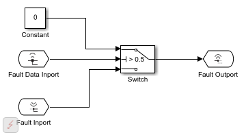 The Fault Data Inport block outputs real-valued scalar, vector, or matrix data. Map this block to a block or component output signal in the model. The model must contain the fault assigned to the behavior. The signal that you map to the block determines the output data type.