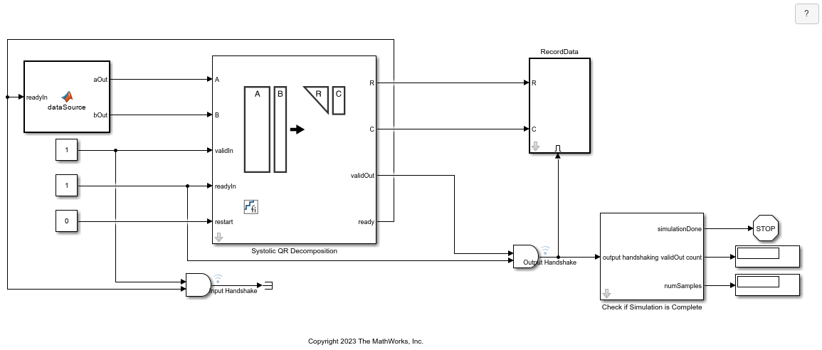 Open the FullSystolicQRModel model. Configure the model workspace and run the simulation.