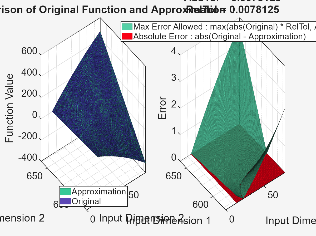 Use the approximate method to generate a Simulink® subsystem that contains the lookup table approximation.