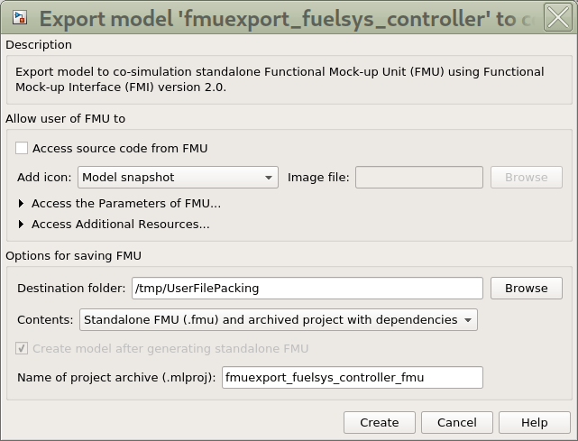 Click Create button to export standalone FMU for Fuel Rate Control Component
