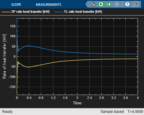 Figure contains an axes object. The axes object with xlabel Time [s], ylabel Rate of heat transfer [kW] contains 2 objects of type line. These objects represent 2P rate heat transfer [kW], TL rate heat transfer [kW].