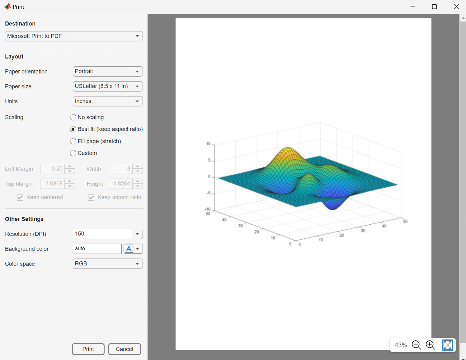 exportappfunction to create an image. Then print the image.In MATLAB Online™, you can use
