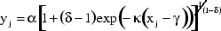 The equation yj=α1+exp[κ(xjγ)] defines the three parameter logistic curve.
