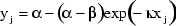 where α is the value of the upper asymptote, β is the value of the lower asymptote, Κ is a scaling parameter, and δ is a parameter that controls the location of the point of inflection for the curve. The point of inflection is located at