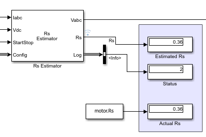 To estimate the PMSM stator resistance, the PMSM Rs Estimator block requires measurements of all three phase currents. If you cannot obtain the third phase measurement from hardware, compute it using the other two phase currents using the relation Ic=-(Ia+Ib).