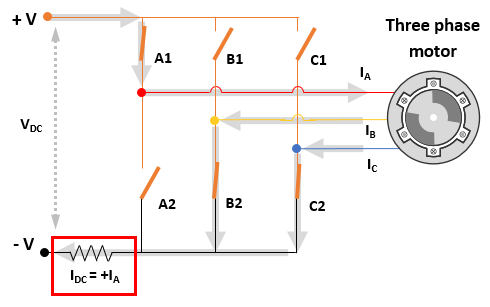 The DC bus or single shunt current measurement method only measures the current in