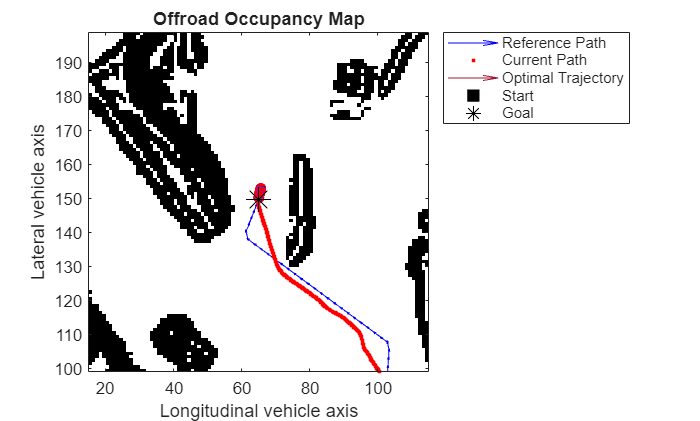 function referencePath = exampleHelperGlobalPlanner(startPose,goalPose) persistent refPath mapMatrix resolution if isempty(refPath) % Load Map Matrix data = load("offroadMap.mat","map"); mapMatrix = data.map; resolution = 1; end