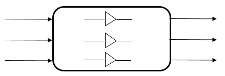 In this configuration of the object we can think of the transmitter or receiver as being modeled as a nonlinear amplifier or a number of parallel amplifiers on each channel. In its simplest form, the amplifier model is linear, but can have nonlinear characteristics as well:
