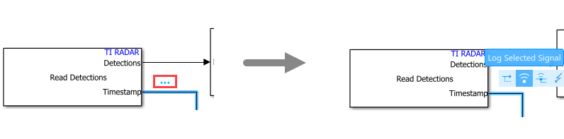 1. In the Simulink model, identify the signals to be logged for monitoring during simulation. Select the identified signal, open its context menu, and click the icon corresponding to Log Selected Signal.