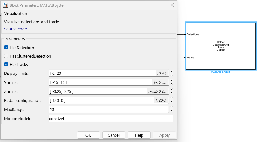 This example provides a helper function to set up and configure all necessary parameters for radar-based people detection, tracking, and sensor fusion.
