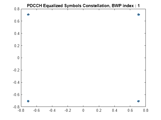[evmInfo,eqSym,refSym] = hNRDownlinkEVM(tmwavegen.Config,rxWaveform,cfg);EVM stats for BWP idx : 1 Low edge PDSCH RMS EVM, Peak EVM, slot 0: 1.197 4.183% Low edge DM-RS RMS EVM, Peak EVM, slot 0: 1.072 2.475% High edge PDSCH RMS EVM, Peak EVM, slot 0: 1.189 4.260% High edge DM-RS RMS EVM, Peak EVM, slot 0: 1.072 2.475% Low edge PDSCH RMS EVM, Peak EVM, slot 1: 1.265 4.133% Low edge DM-RS RMS EVM, Peak EVM, slot 1: 1.274 3.491% High edge PDSCH RMS EVM, Peak EVM, slot 1: 1.263 4.098% High edge DM-RS RMS EVM, Peak EVM, slot 1: 1.274 3.491% Low edge PDSCH RMS EVM, Peak EVM, slot 2: 1.161 3.780% Low edge DM-RS RMS EVM, Peak EVM, slot 2: 1.130 2.516% High edge PDSCH RMS EVM, Peak EVM, slot 2: 1.163 4.014% High edge DM-RS RMS EVM, Peak EVM, slot 2: 1.130 2.516% Low edge PDSCH RMS EVM, Peak EVM, slot 3: 1.250 4.220% Low edge DM-RS RMS EVM, Peak EVM, slot 3: 1.417 3.841% High edge PDSCH RMS EVM, Peak EVM, slot 3: 1.248 4.198% High edge DM-RS RMS EVM, Peak EVM, slot 3: 1.417 3.841% Low edge PDSCH RMS EVM, Peak EVM, slot 4: 1.184 4.170% Low edge DM-RS RMS EVM, Peak EVM, slot 4: 1.089 2.432% High edge PDSCH RMS EVM, Peak EVM, slot 4: 1.182 4.217% High edge DM-RS RMS EVM, Peak EVM, slot 4: 1.089 2.432% Low edge PDSCH RMS EVM, Peak EVM, slot 5: 1.253 4.089% Low edge DM-RS RMS EVM, Peak EVM, slot 5: 1.118 3.114% High edge PDSCH RMS EVM, Peak EVM, slot 5: 1.261 4.358% High edge DM-RS RMS EVM, Peak EVM, slot 5: 1.118 3.114% Low edge PDSCH RMS EVM, Peak EVM, slot 6: 1.110 3.451% Low edge DM-RS RMS EVM, Peak EVM, slot 6: 1.096 2.614% High edge PDSCH RMS EVM, Peak EVM, slot 6: 1.106 3.578% High edge DM-RS RMS EVM, Peak EVM, slot 6: 1.096 2.614% Low edge PDSCH RMS EVM, Peak EVM, slot 7: 1.091 3.738% Low edge DM-RS RMS EVM, Peak EVM, slot 7: 1.123 2.638% High edge PDSCH RMS EVM, Peak EVM, slot 7: 1.091 3.805% High edge DM-RS RMS EVM, Peak EVM, slot 7: 1.123 2.638% Low edge PDSCH RMS EVM, Peak EVM, slot 8: 1.176 3.867% Low edge DM-RS RMS EVM, Peak EVM, slot 8: 1.162 2.749% High edge PDSCH RMS EVM, Peak EVM, slot 8: 1.173 3.869% High edge DM-RS RMS EVM, Peak EVM, slot 8: 1.162 2.749% Low edge PDSCH RMS EVM, Peak EVM, slot 9: 1.100 3.701% Low edge DM-RS RMS EVM, Peak EVM, slot 9: 1.045 2.934% High edge PDSCH RMS EVM, Peak EVM, slot 9: 1.100 3.680% High edge DM-RS RMS EVM, Peak EVM, slot 9: 1.045 2.934% Low edge PDSCH RMS EVM, Peak EVM, slot 10: 1.124 3.422% Low edge DM-RS RMS EVM, Peak EVM, slot 10: 1.100 2.398% High edge PDSCH RMS EVM, Peak EVM, slot 10: 1.126 3.425% High edge DM-RS RMS EVM, Peak EVM, slot 10: 1.100 2.398% Low edge PDSCH RMS EVM, Peak EVM, slot 11: 1.191 4.292% Low edge DM-RS RMS EVM, Peak EVM, slot 11: 1.166 3.107% High edge PDSCH RMS EVM, Peak EVM, slot 11: 1.193 4.023% High edge DM-RS RMS EVM, Peak EVM, slot 11: 1.166 3.107% Low edge PDSCH RMS EVM, Peak EVM, slot 12: 1.172 3.829% Low edge DM-RS RMS EVM, Peak EVM, slot 12: 1.133 2.644% High edge PDSCH RMS EVM, Peak EVM, slot 12: 1.174 3.822% High edge DM-RS RMS EVM, Peak EVM, slot 12: 1.133 2.644% Low edge PDSCH RMS EVM, Peak EVM, slot 13: 1.297 4.278% Low edge DM-RS RMS EVM, Peak EVM, slot 13: 1.271 2.706% High edge PDSCH RMS EVM, Peak EVM, slot 13: 1.295 4.304% High edge DM-RS RMS EVM, Peak EVM, slot 13: 1.271 2.706% Low edge PDSCH RMS EVM, Peak EVM, slot 14: 1.208 4.109% Low edge DM-RS RMS EVM, Peak EVM, slot 14: 1.067 2.699% High edge PDSCH RMS EVM, Peak EVM, slot 14: 1.203 4.001% High edge DM-RS RMS EVM, Peak EVM, slot 14: 1.067 2.699% Low edge PDSCH RMS EVM, Peak EVM, slot 15: 1.220 5.090% Low edge DM-RS RMS EVM, Peak EVM, slot 15: 1.064 2.133% High edge PDSCH RMS EVM, Peak EVM, slot 15: 1.214 5.005% High edge DM-RS RMS EVM, Peak EVM, slot 15: 1.064 2.133% Low edge PDSCH RMS EVM, Peak EVM, slot 16: 1.110 3.759% Low edge DM-RS RMS EVM, Peak EVM, slot 16: 1.161 3.121% High edge PDSCH RMS EVM, Peak EVM, slot 16: 1.116 3.804% High edge DM-RS RMS EVM, Peak EVM, slot 16: 1.161 3.121% Low edge PDSCH RMS EVM, Peak EVM, slot 17: 1.349 4.329% Low edge DM-RS RMS EVM, Peak EVM, slot 17: 1.363 3.074% High edge PDSCH RMS EVM, Peak EVM, slot 17: 1.350 4.368% High edge DM-RS RMS EVM, Peak EVM, slot 17: 1.363 3.074% Low edge PDSCH RMS EVM, Peak EVM, slot 18: 1.330 4.501% Low edge DM-RS RMS EVM, Peak EVM, slot 18: 1.447 3.380% High edge PDSCH RMS EVM, Peak EVM, slot 18: 1.327 4.519% High edge DM-RS RMS EVM, Peak EVM, slot 18: 1.447 3.380% PDCCH RMS EVM, Peak EVM, slot 0: 0.506 1.116% PDCCH DM-RS RMS EVM, Peak EVM, slot 0: 0.248 0.337% PDCCH RMS EVM, Peak EVM, slot 1: 0.406 0.854% PDCCH DM-RS RMS EVM, Peak EVM, slot 1: 0.214 0.326% PDCCH RMS EVM, Peak EVM, slot 2: 0.501 0.965% PDCCH DM-RS RMS EVM, Peak EVM, slot 2: 0.245 0.319% PDCCH RMS EVM, Peak EVM, slot 3: 0.451 1.110% PDCCH DM-RS RMS EVM, Peak EVM, slot 3: 0.238 0.387% PDCCH RMS EVM, Peak EVM, slot 4: 0.506 1.071% PDCCH DM-RS RMS EVM, Peak EVM, slot 4: 0.250 0.426% PDCCH RMS EVM, Peak EVM, slot 5: 0.475 1.188% PDCCH DM-RS RMS EVM, Peak EVM, slot 5: 0.156 0.297% PDCCH RMS EVM, Peak EVM, slot 6: 0.533 1.123% PDCCH DM-RS RMS EVM, Peak EVM, slot 6: 0.215 0.367% PDCCH RMS EVM, Peak EVM, slot 7: 0.509 0.944% PDCCH DM-RS RMS EVM, Peak EVM, slot 7: 0.271 0.442% PDCCH RMS EVM, Peak EVM, slot 8: 0.484 1.140% PDCCH DM-RS RMS EVM, Peak EVM, slot 8: 0.194 0.338% PDCCH RMS EVM, Peak EVM, slot 9: 0.434 0.888% PDCCH DM-RS RMS EVM, Peak EVM, slot 9: 0.286 0.533% PDCCH RMS EVM, Peak EVM, slot 10: 0.419 0.879% PDCCH DM-RS RMS EVM, Peak EVM, slot 10: 0.226 0.408% PDCCH RMS EVM, Peak EVM, slot 11: 0.433 0.868% PDCCH DM-RS RMS EVM, Peak EVM, slot 11: 0.204 0.309% PDCCH RMS EVM, Peak EVM, slot 12: 0.435 0.826% PDCCH DM-RS RMS EVM, Peak EVM, slot 12: 0.202 0.321% PDCCH RMS EVM, Peak EVM, slot 13: 0.509 1.250% PDCCH DM-RS RMS EVM, Peak EVM, slot 13: 0.303 0.463% PDCCH RMS EVM, Peak EVM, slot 14: 0.396 0.827% PDCCH DM-RS RMS EVM, Peak EVM, slot 14: 0.184 0.284% PDCCH RMS EVM, Peak EVM, slot 15: 0.472 1.117% PDCCH DM-RS RMS EVM, Peak EVM, slot 15: 0.173 0.348% PDCCH RMS EVM, Peak EVM, slot 16: 0.524 1.045% PDCCH DM-RS RMS EVM,