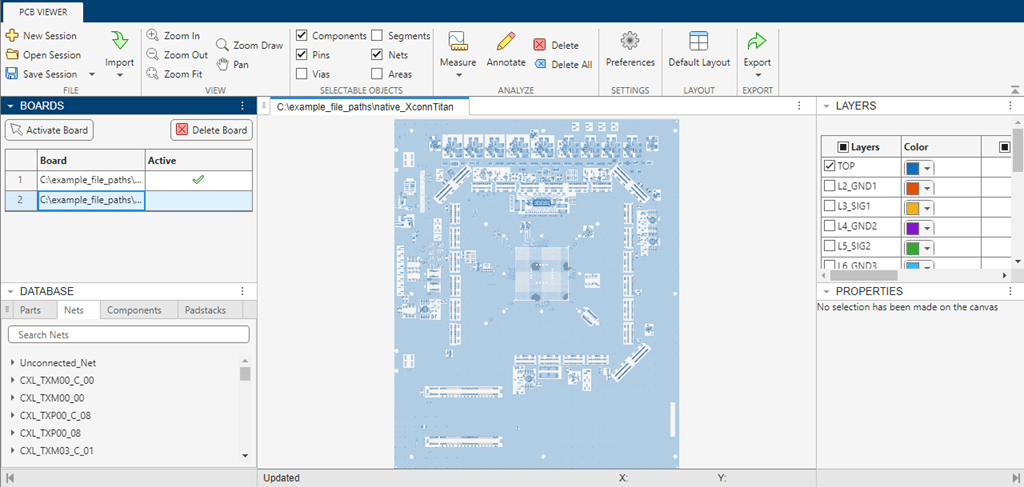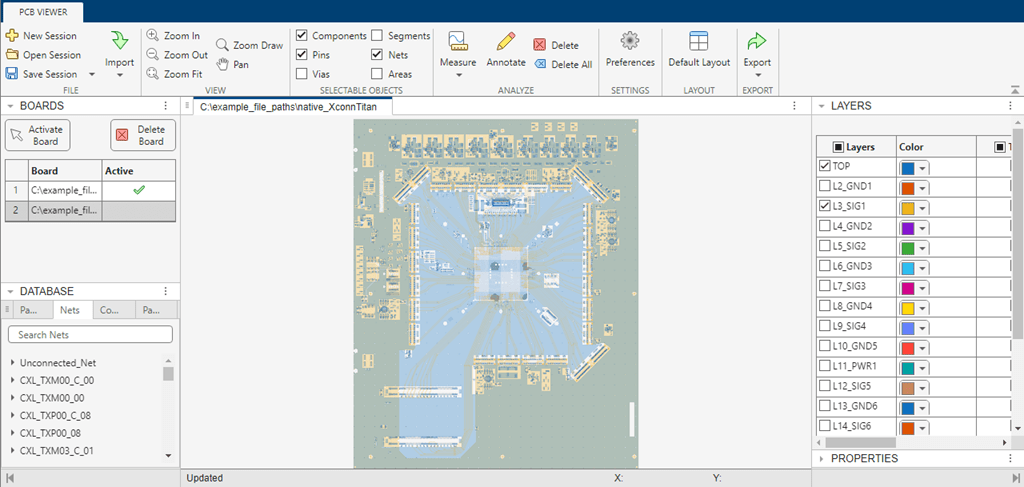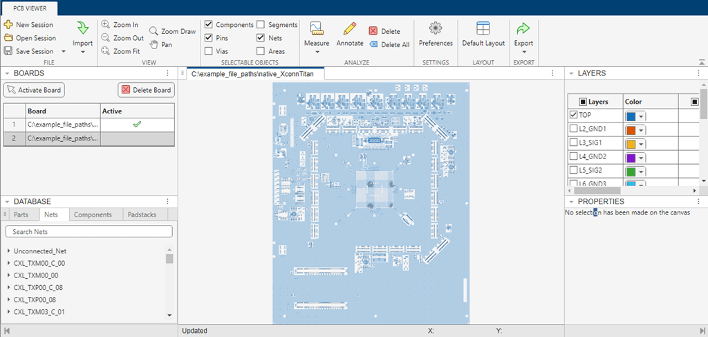 Launch the PCB Viewer App and then import a PCB database file, or open a previously saved PCB Viewer session.