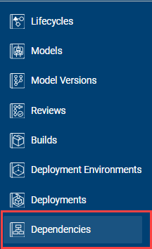 You can also create dependencies between models and their data, or between models and references. References are the files or information that you can associate with a model, model version, or Review document.