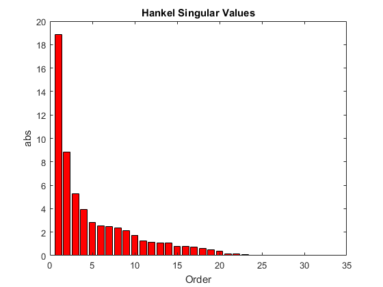 LTI model to be reduced. Without any other inputs, balancmr will plot the Hankel singular values of G and prompt for reduced order