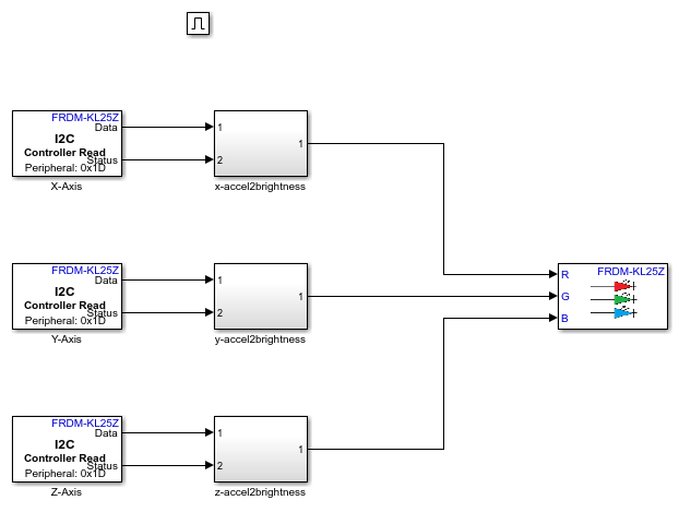 This example shows how to use Simulink® Coder™ Support Package for NXP™ FRDM-KL25Z Board to control the color of the RGB LED based on the orientation of the board.