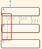 Transition lines shall not overlap or intersect with states, graphical functions, Simulink functions, MATLAB functions, truth tables, boxes, junctions, annotations, text labels, or other transition lines.