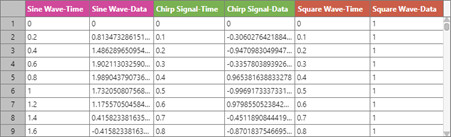 You can change the position of the data table, use cursors to examine your data, and configure how the data in the table is presented with respect to time. For more information, see View Table of Data in Playback Block.