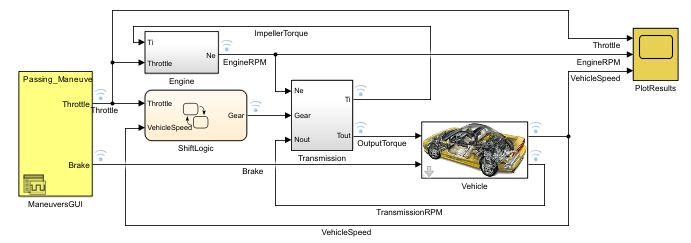 In the following model, a Signal Editor block provides test signals while outputs are logged for analysis in the Scope block.