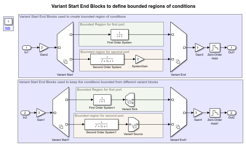 In a given hierarchy, a region between the outport of a Variant Start block and the corresponding inport of the Variant End block is defined as a bounded region if the following conditions are met: