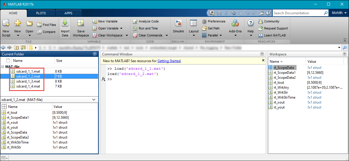 Suppose that the name of the model is sdcard. In the first run, Simulink creates sdcard_1_1.mat file and starts logging data in this file. After the logging in the first file is completed, Simulink creates sdcard_1_2.mat file and continues logging data in this file. Likewise, the logging continues in multiple MAT-files until the Simulation stop time is elapsed. If the same model is run again, the new files are named as sdcard_2_1.mat, sdcard_2_2.mat, and so on.