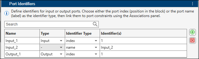 6. In the Associations pane, select the Port Identifiers Input_1 and Input_2.