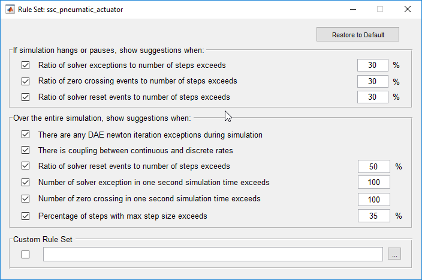 Click Rule Customization in the Solver Profiler to access the rule set. You can change the thresholds for most of these rules and also select which rules you want to apply selectively during a simulation run.