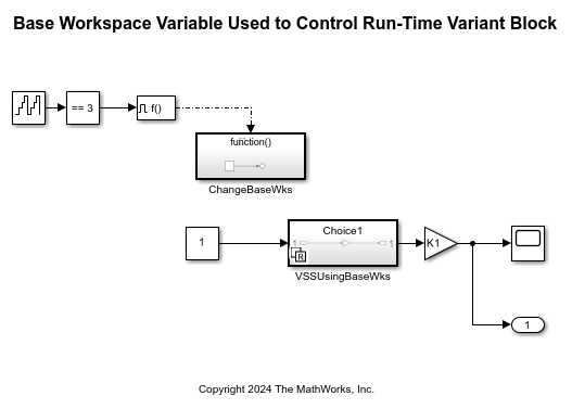 This example shows how to control the active variant of a run-time Variant Subsystem block by using a variable in the base workspace.
