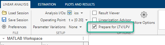 On the Linear Analysis tab, select Prepare for LTV/LPV.